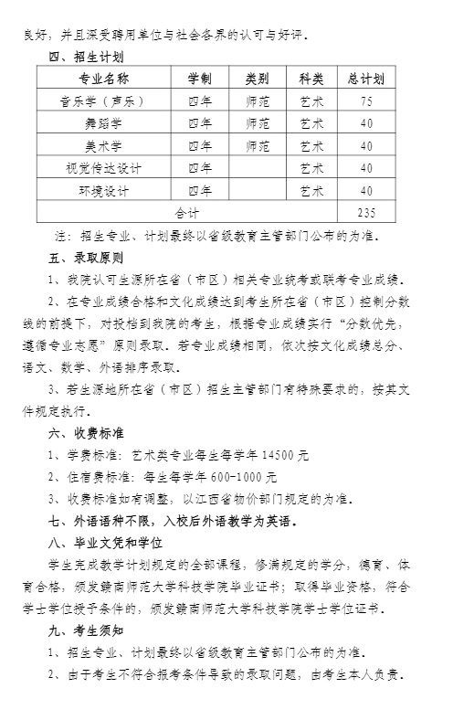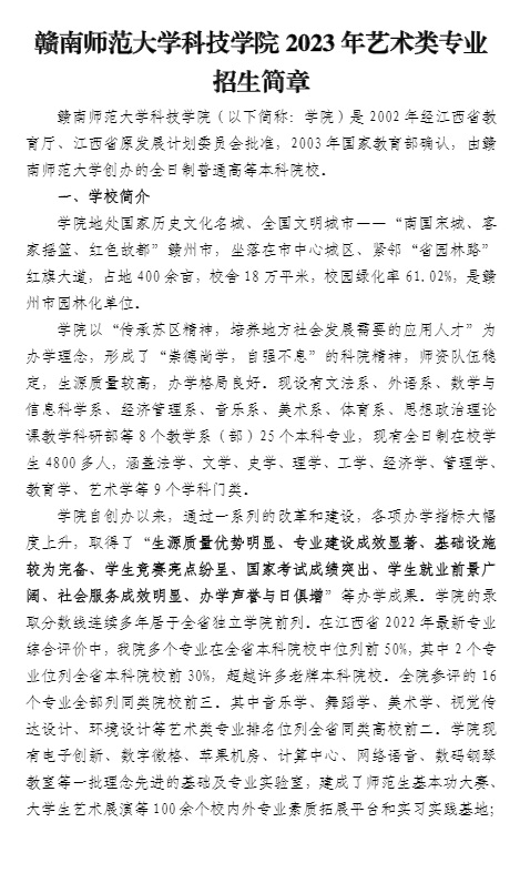贛南師范大學(xué)科技學(xué)院2023年藝術(shù)類專業(yè)招生簡(jiǎn)章