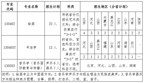 1.繪畫、書法學、音樂學(音樂國際教育與傳播)學制均為四年(全日制本科生)。