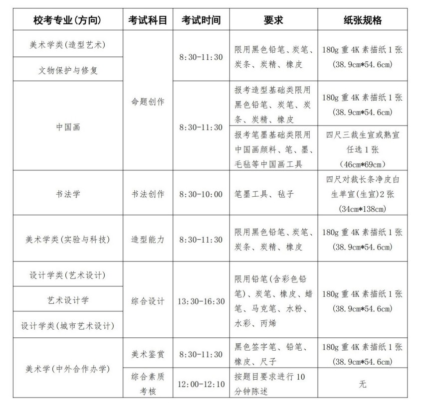 所有專(zhuān)業(yè)考試禁止使用油畫(huà)顏料,禁止使用各種圖文數(shù)字模板模具;現(xiàn)場(chǎng)考試禁止使用需外接電源的繪畫(huà)輔助工具及設(shè)備。