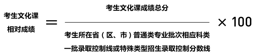 ⒊文化課相對(duì)成績(jī)計(jì)算公式(四舍五入保留至小數(shù)點(diǎn)后三位)