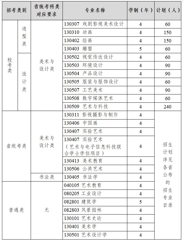 考生無需參加省統考和學校校考。普通類專業編制分省分專業計劃,錄取批次及招生計劃以計劃投放省份公布的招生專業目錄為準。