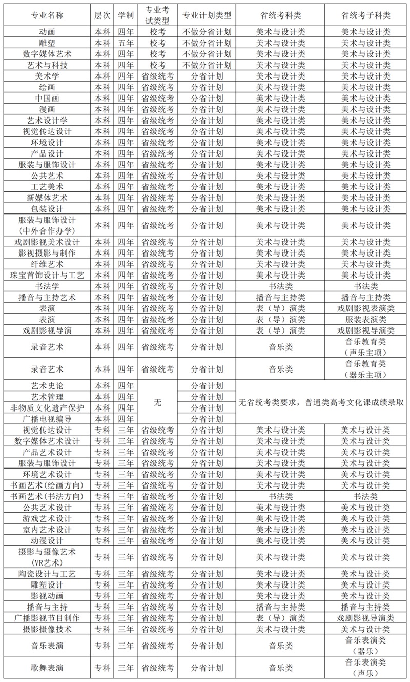 2025年雕塑、動畫、數(shù)字媒體藝術(shù)和藝術(shù)與科技四個藝術(shù)類本科專業(yè),面向全國在省級統(tǒng)考合格基礎上組織校考,不編制分省招生計劃,最終招生計劃以上級主管部門批復的為準。