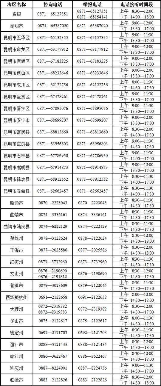 云南省2025年成人高考考試期間咨詢及舉報(bào)聯(lián)系方式