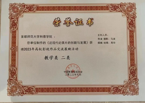 由周華老師聯合馬波導演共同創作的《近現代紀錄片的創新與發展》獲得教師組教學類二類作品獎項。