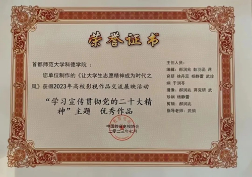 | 首都師范大學科德學院師生在“2023高校影視作品交流展映”活動中斬獲多類獎項 |