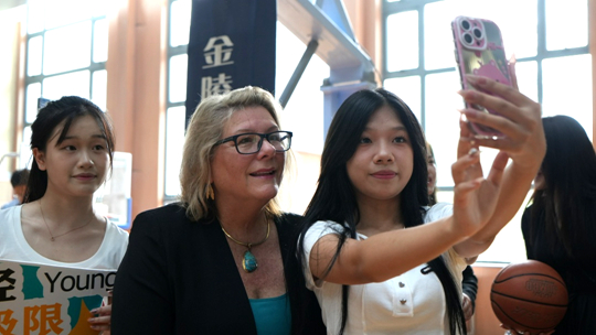 北京的初秋,優雅愜意,副校長周瑛及相關部門負責人陪同索菲亞大學校長CarolHumphreys一行開啟了科德校園參觀、體驗之旅。