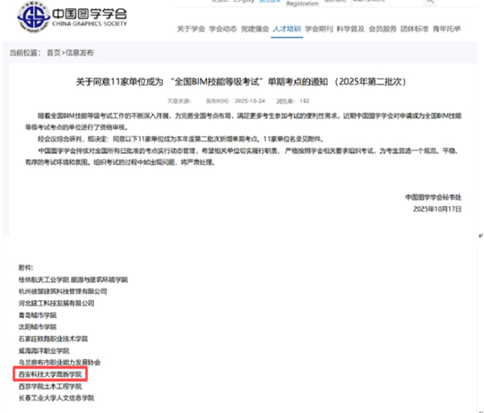 | 錨定數智轉型 賦能人才培育——西安科技大學高新學院成功獲批“全國BIM技能等級考試”考點 |