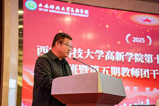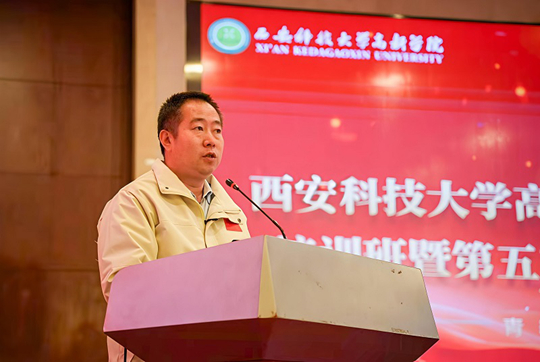 中共延安市寶塔區委黨校副校長李滔致歡迎詞,他指出,延安精神與西安科技大學高新學院的校風校訓有著深刻的內在共鳴,在這里開展“青馬工程”,是將地方紅色資源與高校思政教育有機的連接,能夠讓青年學子在歷史現場感悟真理力量。