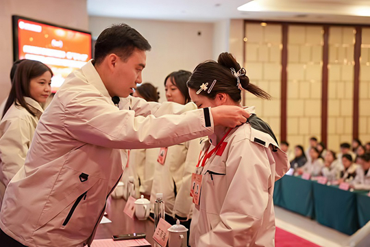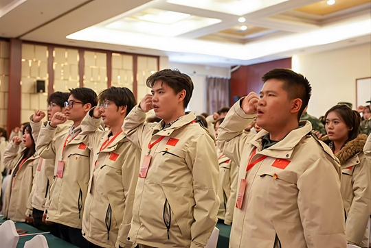 學院團委書記滕嬋娟為十一期“青馬工程”學員代表頒發學員證。青年代表手中的,不僅僅是學員證,更是“勤學善思、知行合一”的學風要求具象化傳遞。“從老師手中接過的不僅是學員證,更是一份沉甸甸的責任。”學生代表道出了在場學員的心聲。最后,全體學員的莊嚴宣誓,聲聲誓言在會場回蕩。這既是對革命先輩的承諾,更是對學校“立德樹人”根本任務的生動回應。