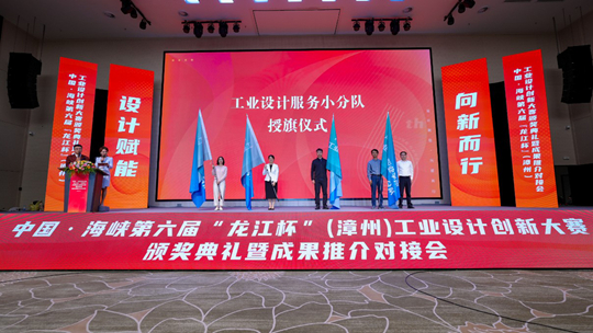 程永勝(中)上臺(tái)接過(guò)工業(yè)設(shè)計(jì)服務(wù)小分隊(duì)的旗幟