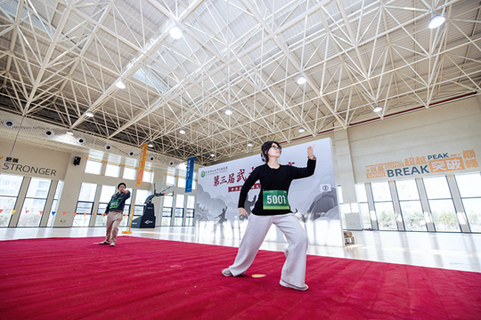 本次比賽項目設(shè)置主要以目前所開設(shè)課程為主,豐涵蓋了拳術(shù)、器械等多個類別,既包括剛勁有力的長拳、舒展沉穩(wěn)的太極拳(劍)、功夫扇,也有棍掃一片的長器械。賽場上,選手們精神抖擻,一招一式規(guī)范到位,動作或剛?cè)岵蚣残煊兄拢瑢⑽湫g(shù)的“形、神、勁、律”展現(xiàn)得淋漓盡致。集體項目中,隊員們默契配合,陣容整齊劃一,氣勢恢宏,贏得了現(xiàn)場觀眾的陣陣掌聲。