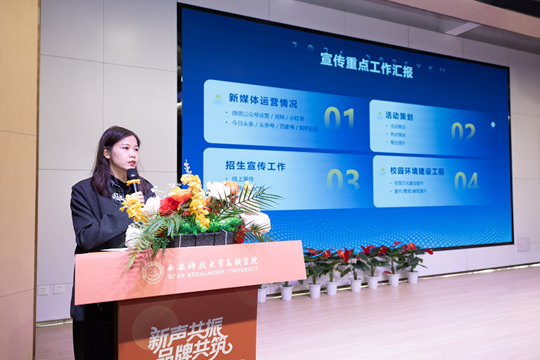 為提升宣傳工作隊伍專業(yè)素養(yǎng),大會還設(shè)置了業(yè)務(wù)培訓(xùn)環(huán)節(jié)。華商網(wǎng)新聞互動中心副總監(jiān)劉永拓以《打造暖心爆款短視頻 讓校園新聞澎湃大流量》為題,結(jié)合豐富案例,從短視頻選題、拍攝技巧、剪輯思路、傳播規(guī)律等方面進(jìn)行了深入淺出的講解,為師生帶來了極具實(shí)用性的專業(yè)指導(dǎo);宣傳與品牌建設(shè)辦公室副主任梁丹圍繞“新聲共振 品牌共筑”主題,詳細(xì)解讀了2026年度品牌宣傳計劃,明確了工作重點(diǎn)與實(shí)施路徑。