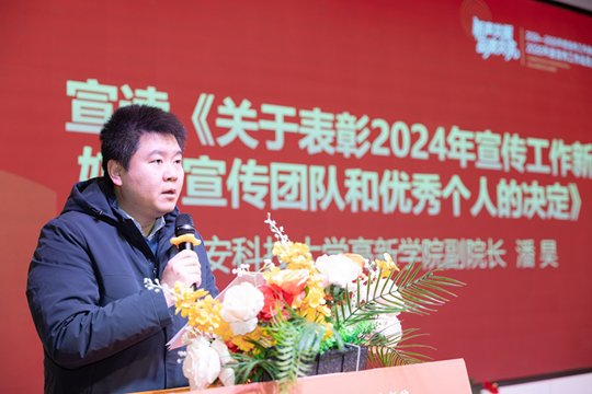 會上,學(xué)院副院長潘昊宣讀了《關(guān)于表彰2024年宣傳工作新媒體宣傳團(tuán)隊和優(yōu)秀個人的決定》。隨后,大會進(jìn)入頒獎環(huán)節(jié),對在宣傳工作中表現(xiàn)突出的集體與個人進(jìn)行隆重表彰各獎項分批次有序頒發(fā),現(xiàn)場掌聲陣陣,充分彰顯了學(xué)院對宣傳工作的高度重視與對先進(jìn)典型的激勵認(rèn)可。