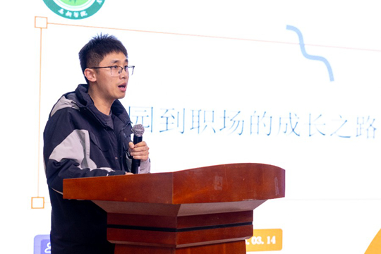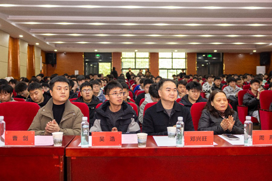 優秀校友曹劍以親身經歷為高新學子帶來了一場充滿力量的分享。他手握四項發明專利、六篇學術論文,參與“1600W通信二次電源模塊開發”、“4300W通信一次電源模塊開發”等多個重點項目,展現了卓越的科研能力與工程實踐精神。分享中,他展示了自己本科時期的生活照片,并由衷感恩于母校對自己的栽培。他坦言,考研不僅改變了自己的人生軌跡,更讓他遇見了研究生導師劉樹林教授,正是劉教授為他“打開了認識世界的大門”。他鼓勵學弟學妹要珍惜大學時光,勇敢嘗試新事物,多多歷練,在攀登人生巔峰的道路上永不言棄!