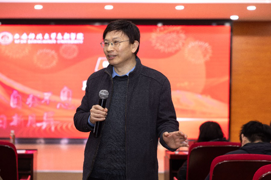 汪院長代表學院對劉樹林教授及各位校友的到來表示熱烈歡迎和衷心感謝。他特別提到,在劉教授研究生階段的悉心指導下,三位高新學子得以淬煉專業素養、深耕學術沃土,最終成長為行業棟梁之材。