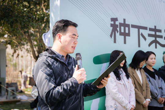 活動開始,團委副書記王添亮為植樹活動致辭,他說:“同學們,你們是“自強不息,日新月異”校訓的踐行者,更是生態文明建設的生力軍。作為高新青年,你們肩負的不僅是知識的探索,更需以雙手丈量責任——扶正樹苗時,亦是扶正對生命的敬畏;培土澆水中,更在培植家國情懷。樹木十年成材,青年十年礪劍。愿你們如這新栽的樹苗,向下扎根汲取知識的養分,向上生長觸摸理想的蒼穹,終成支撐時代的棟梁。”學生代表發起環保倡議,全場師生熱血沸騰,齊聲高呼“共筑秦嶺生態屏障 守護自然綠色家園西安科技大學高新學院學子在行動”!