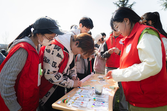 本次活動精心設計游園會闖關環節,將趣味性與教育性完美融合。在書簽DIY區域,同學們用畫筆表達對自然的熱愛;環保問答環節加深了對環保理念的理解;植物連連看游戲考驗植物認知;心愿卡上寫下對未來的期許,掛在樹枝上象征希望;時光膠囊收藏著青春記憶,期待未來開啟。