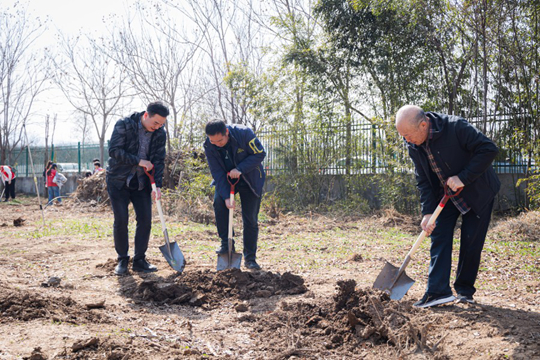 活動最后,學院黨委書記劉琳、工會主席孫龍運等領導與學生們共同栽種下“希望樹”。這一鍬土、一瓢水間,種下的不僅是承載生態希望的幼苗,更蘊含著教育者對學生成長成才的深切期許——以扎根土地的堅韌、向上生長的信念,滋養青年一代的責任擔當與家國情懷。通過實踐,師生們不僅深化對團隊合作與生態責任的理解,更在攜手耕耘中見證知行合一的教育力量。