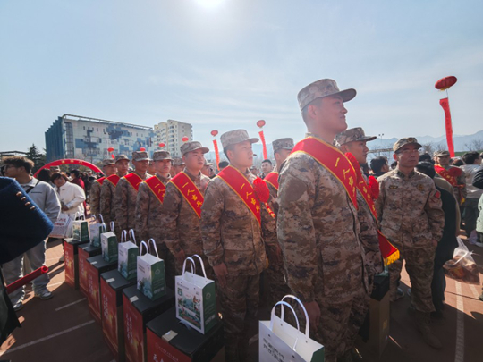 活動現(xiàn)場,紅旗獵獵、戰(zhàn)歌鏗鏘,新兵家屬及師生駐足見證青年們身著戎裝、攜筆從戎的熾熱情景。在《中國人民解放軍軍歌》的激昂旋律中,新兵們肩披“光榮入伍”綬帶,胸前紅花似火,以挺拔軍姿列隊(duì)集結(jié)。他們目光如炬,誓言鏗鏘,即將奔赴祖國四方,用熱血青春筑起鋼鐵長城。
