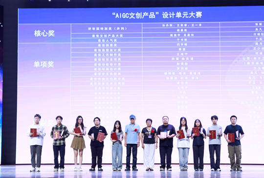頒獎(jiǎng)環(huán)節(jié),首先頒發(fā)的是單元獎(jiǎng),程源海先生、寧遠(yuǎn)景先生為“經(jīng)典電影仿拍”競(jìng)賽單元獲獎(jiǎng)代表頒獎(jiǎng)。姬永兵先生、宋欣慧女士為“AIGC文創(chuàng)產(chǎn)品設(shè)計(jì)”競(jìng)賽單元獲獎(jiǎng)代表頒獎(jiǎng)。阮圣文先生、王文綺女士為“72小時(shí)極拍”競(jìng)賽單元獲獎(jiǎng)代表頒獎(jiǎng)。