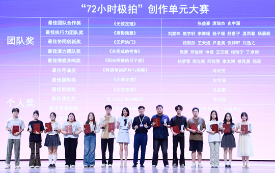 隨后,現(xiàn)場(chǎng)頒發(fā)主競(jìng)賽單元獎(jiǎng),開獎(jiǎng)嘉賓楊楓先生、齊千郡女士、劉向京先生,王大治先生、夏一瑤女士分別宣讀了一、二、三等獎(jiǎng)獲獎(jiǎng)名單。劉洋先生、谷國(guó)慶先生,周友朝先生、劉建華先生,苗阜先生、梁麗女士先后分別為獲得一、二、三等獎(jiǎng)的獲獎(jiǎng)主創(chuàng)代表頒獎(jiǎng)。成都東軟學(xué)院、山西傳媒學(xué)院、西北大學(xué)現(xiàn)代學(xué)院獲得優(yōu)秀組織獎(jiǎng)。河北傳媒學(xué)院徐寧老師,西北大學(xué)現(xiàn)代學(xué)院李嘉琪、孫宇茹、張雪老師獲得伯樂獎(jiǎng)。