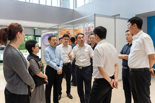 崔建明副區(qū)長一行參觀了西安現(xiàn)代綜合職業(yè)高中、西安南開高級(jí)中學(xué)及西安科技大學(xué)高新學(xué)院南北教學(xué)區(qū)。在學(xué)院北區(qū),孫董事長陪同崔區(qū)長一行乘觀光車視察了教學(xué)樓、圖書館、現(xiàn)代加工中心、實(shí)驗(yàn)室、學(xué)生宿舍、藝體樓、大操場等教學(xué)、生活環(huán)境。在學(xué)院南區(qū)科技樓,考察團(tuán)重點(diǎn)參觀了經(jīng)濟(jì)管理與傳媒藝術(shù)學(xué)院21級(jí)“無界創(chuàng)新”藝術(shù)系學(xué)生畢設(shè)作品展,對(duì)同學(xué)們?cè)诖髮W(xué)期間取得的成績給予了充分的肯定。隨后,考察團(tuán)參觀了科技園駐園企業(yè)陜西航天意德科技集團(tuán)公司、BIM實(shí)驗(yàn)室、西科節(jié)能公司、節(jié)能公司實(shí)驗(yàn)室、西安大數(shù)網(wǎng)絡(luò)科技公司,各項(xiàng)目負(fù)責(zé)人詳細(xì)介紹了實(shí)驗(yàn)室建設(shè)成果及校企合作進(jìn)展,展現(xiàn)了學(xué)院在科技創(chuàng)新、職業(yè)教育和資源整合方面的突出成效。