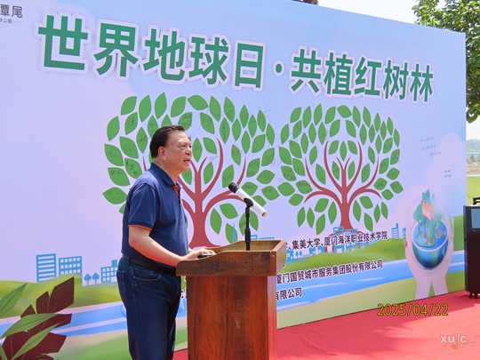 活動現(xiàn)場,廈門大學嘉庚學院環(huán)境科學與工程學院院長盧昌義教授應(yīng)邀致辭。廈門大學嘉庚學院紅樹林研究團隊還展示了AI與低空經(jīng)濟技術(shù)如何賦能紅樹林保護與研究的場景運用,同時,攜手廈門大學、集美大學、廈門海洋職業(yè)技術(shù)學院師生代表以及廈門國貿(mào)地產(chǎn)集團有限公司干部職工共同揮鍬植綠。