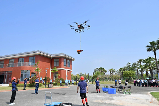一米多長的無人機搭載著現(xiàn)代化裝備騰空而起,飛躍在紅樹林上,成了活動中最引人注目的焦點。廈門大學嘉庚學院紅樹林研究團隊現(xiàn)場展示了無人機噴灑、無人機采樣、困難地鉆土、無人機運輸四項技術(shù)應(yīng)用。