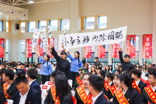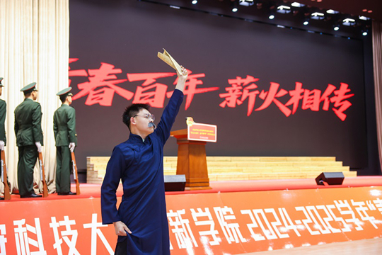 開場節目《青春百年・薪火相傳》由國旗班、聲樂社及各二級學院共同演繹,以話劇表演沉浸式呈現百年青年奮斗史。五組演員分飾 1919 抗爭、1949 建國、1979 改革、1999 榮光、2025 強國等年代青年,在觀眾席間快節奏還原歷史經典場景,現場觀眾反響熱烈,掌聲不斷。