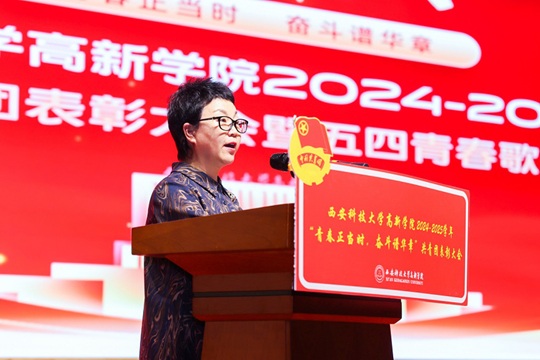 黨委書記劉琳在講話中強調黨委書記劉琳在總結講話中肯定了過去一年學院共青團工作的成績。他表示,共青團以“陜西省團建示范高校”建設為牽引,在思想育人、實踐育人等方面取得顯著成效,斬獲省級五四紅旗團委等多項榮譽,充分彰顯了高新青年的責任擔當。站在新中國成立76周年的歷史節點,廣大青年要勇擔時代重任,以受表彰集體為標桿,在強國建設的賽道上奮力奔跑,用挺膺擔當的實際行動綻放青春絢麗之花。