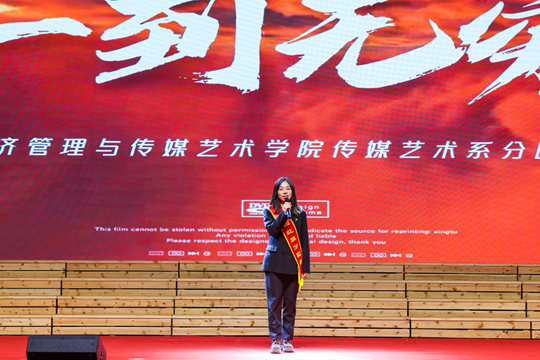 在“青年說”筑夢先鋒宣講環節,范易鷺用跨越15省42地市的服務足跡解碼鄉村振興,吳關冰泠以5項省獎詮釋科技報國,曹慧峰用4000小時訓練鑄就國旗榮光,張思元則揭秘學生干部的“服務力公式”。經濟管理與傳媒藝術學院(傳媒系、藝術系)分團委書記張西唯在《從一到無窮大》主題匯報中,系統闡釋“五率一度”三維育人體系,展現連續三年蟬聯“五四紅旗分團委”的奮進密碼。