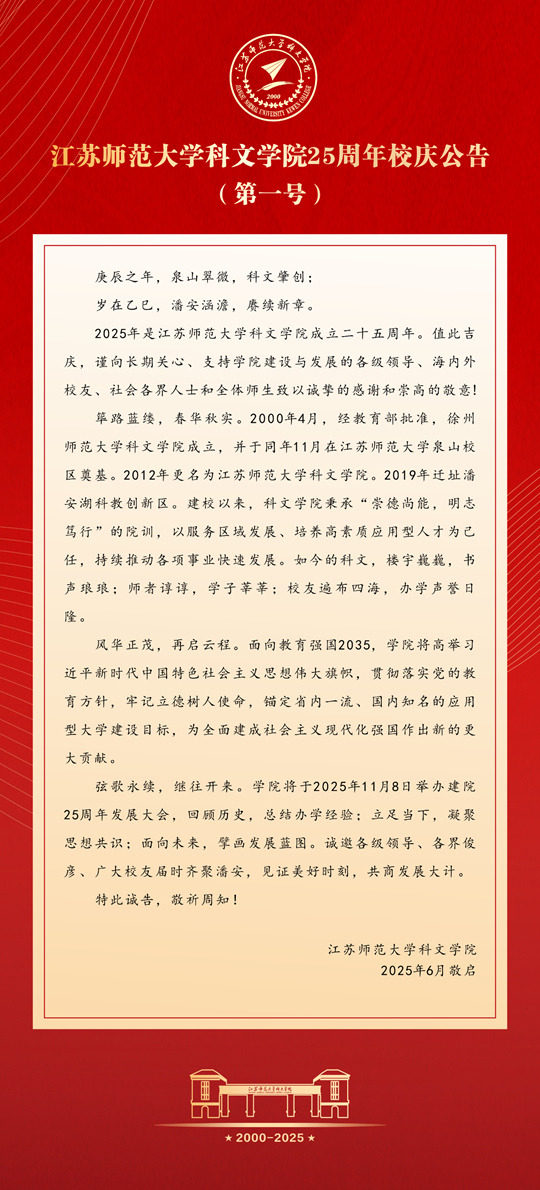 江蘇師范大學(xué)科文學(xué)院25周年校慶公告