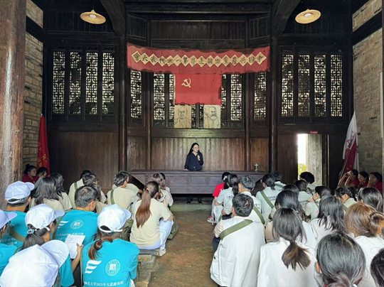 實踐團首先來到小井紅軍醫(yī)院。這里曾是人民軍隊第一所正規(guī)醫(yī)院,在物資極度匱乏、敵軍嚴密封鎖的艱難處境下,承擔起救治紅軍傷病員的重任。實踐團成員們認真聆聽講解,了解到當年醫(yī)護人員克服缺醫(yī)少藥等諸多困難,憑借著頑強的意志堅守崗位,挽救了無數(shù)生命。成員晏思惠不禁感嘆:“看到當年紅軍醫(yī)護人員在如此惡劣條件下仍堅持救死扶傷,這種艱苦奮斗、信念堅定的精神,正是我們當代青年所需要學習和傳承的。”