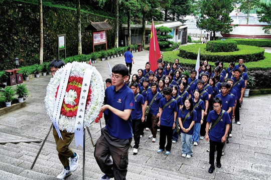 隨后,實踐團來到井岡山烈士陵園,懷著崇敬的心情敬獻花圈,全體成員靜默佇立,向革命先烈表達沉痛的緬懷與崇高的敬意。在革命博物館里,成員們通過一件件歷史實物、一幅幅珍貴圖片,重溫那段崢嶸歲月,對革命歷程有了更直觀、更深刻的認識。成員蘇祺雯表示:“看到先烈們?yōu)榱烁锩鼊倮幌侇^顱、灑熱血,他們的熱血鑄就了如今的山河。傳承和弘揚革命精神,是我們義不容辭的使命。”