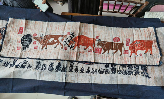 此次探訪讓隊員們深刻體會到,古法染印不僅是一門手藝,更是“天人合一”理念的生動載體。古人“取法自然,還于自然”的智慧,貫穿從染料甄選到染色完成的全過程:不刻意雕琢過度精致的紋樣,不強求千篇一律的染色效果,而是順應植物色素的特性與布料的肌理,讓人與萬物在染缸中達成和諧默契,每塊古法染印的布料都是自然的“代言人”——靛藍里藏著藍草經水發酵的微瀾,赭石色沉淀著薯莨與陽光的對話,它們承載著四季流轉的痕跡,凝聚著天地靈韻,更是人與自然共生的鮮活見證。