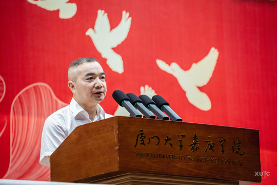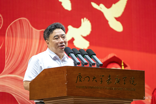 “江山代有才人出,數風流人物,還看嘉庚學子。”作為合作單位代表,廈門日報社黨委委員、副總編輯陳煒明盛贊學校育人成果,并細數報社與嘉庚學院的深厚淵源。陳煒明認為,擁有“富礦”是嘉庚學子有別于其他高校畢業生的氣質與特色,這個“富礦”指的是嘉庚精神:忠公、誠毅、勤儉、創新。“大學精神對人格的養成才是在職場行穩致遠的護身符!”他鼓勵嘉庚學子們:“面對職場風云,你們有資格笑傲江湖,因為你們‘嘉’里有礦,有嘉庚精神的富礦!”