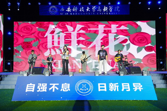 整場晚會節(jié)目內(nèi)容豐富,形式多樣,高潮迭起。由校團(tuán)委樂隊(duì)帶來的開場表演《火車日記》《鮮花》瞬間點(diǎn)燃現(xiàn)場激情;大學(xué)生藝術(shù)團(tuán)帶來的古典舞《只此青綠》韻味悠長,展現(xiàn)國風(fēng)之美;MTB嘻哈社的《啟航》動感十足,彰顯青春活力;國際教育與人文學(xué)院演繹的《西安人的歌》親切動聽,增添了濃厚的地域文化色彩;國旗班表演的《新時期的力量》氣勢恢宏,令人熱血沸騰;經(jīng)濟(jì)管理與傳媒藝術(shù)學(xué)院的歌曲《世界贈予我的》以及各學(xué)院、學(xué)生社團(tuán)選送的《明天,你好》《彩虹》《愛你》等節(jié)目輪番上演,或溫情脈脈,或活力四射,充分展現(xiàn)了學(xué)子的多才多藝與積極向上的精神風(fēng)貌。青年志愿者協(xié)會的情景劇與舞蹈《我們都是志愿者》則生動詮釋了奉獻(xiàn)與擔(dān)當(dāng),贏得了陣陣掌聲。