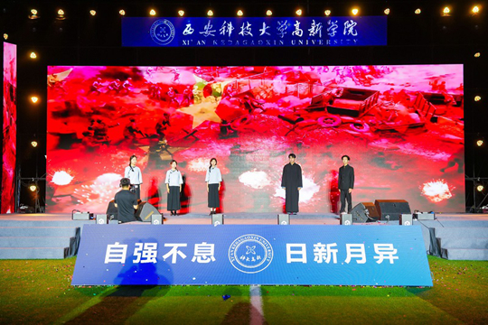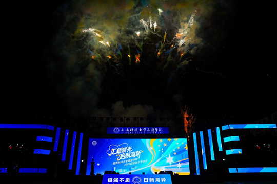 2025年9月24日晚,以“匯新聚光,啟航高新”為主題的西安科技大學(xué)高新學(xué)院2025級迎新文藝晚會在北校區(qū)體育場隆重舉行。晚會現(xiàn)場星光璀璨、氣氛熱烈,學(xué)院領(lǐng)導(dǎo)手持“高光時刻新想事成”“今天C位出道未來由你定義”等創(chuàng)意手舉牌,在繽紛彩屑中為晚會點(diǎn)贊助力;參演人員與身著迷彩服的學(xué)生、身著禮服的國旗班成員在“匯新聚光 啟航高新”的主題背景前合影留念,盡顯校園多元風(fēng)采。學(xué)院領(lǐng)導(dǎo)、各職能部門負(fù)責(zé)人、教師代表、往年畢業(yè)的校友與全體2025級新生歡聚一堂,共同觀看了這場青春盛宴。