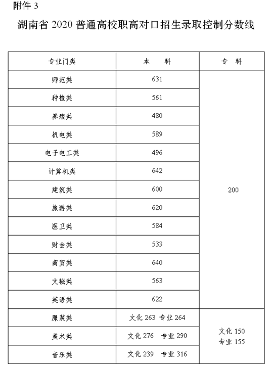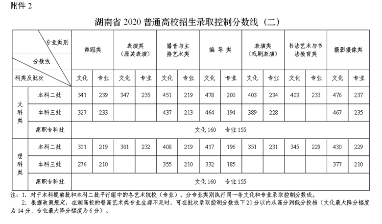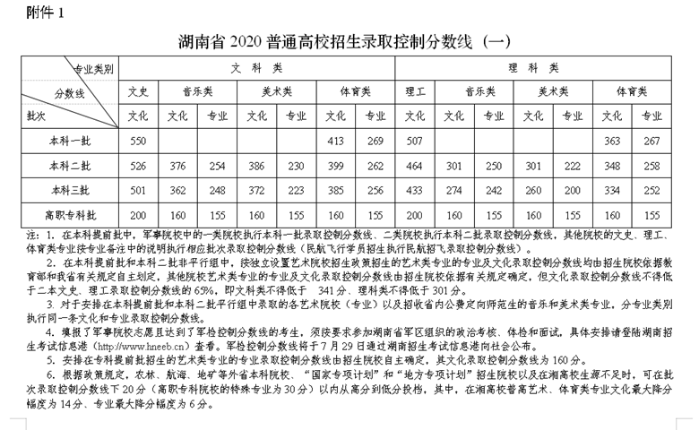 | 湖南公布2020年普通高校招生錄取控制分?jǐn)?shù)線 |