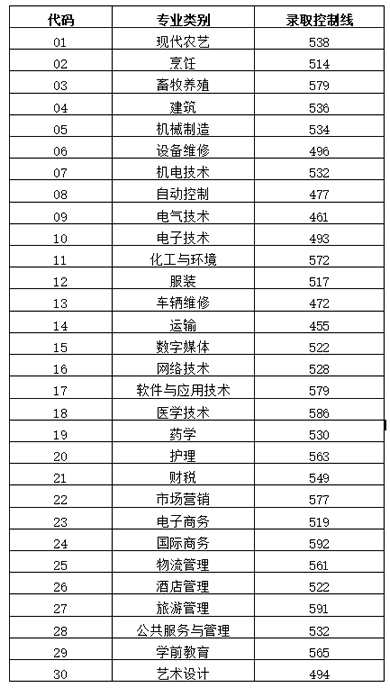 1.普通類:特殊類型招生控制線520分,一段線443分,二段線150分。“3+2對口貫通分段培養”高職志愿填報資格線為393分。