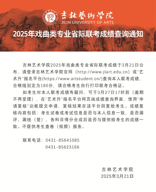 吉林藝術學院2025年戲曲類專業省際聯考專業課成績合格線