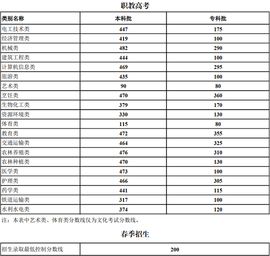 云南省2025年職教高考、春季招生錄取最低控制分數線