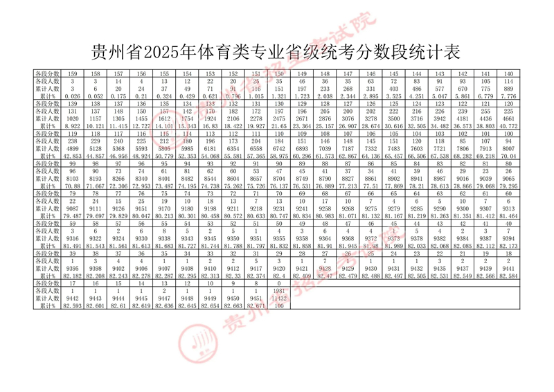 根據《省教育廳關于做好貴州省2025年普通高等學校藝術、體育類專業考試招生工作的通知》(黔教發〔2024〕30號)精神,貴州省2025年普通高校招生體育類專業省級統考錄取控制分數線已劃定。