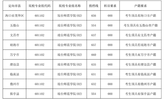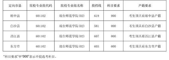 2025年瓊臺師范學院小學鄉村教師定向公培生(小學科學教育)及地方優師專項計劃第一志愿第一輪投檔分數線