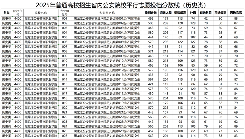 2025年黑龍江省普通高校招生提前批省內(nèi)公安院校于7月17日進(jìn)行平行志愿投檔,現(xiàn)公布院校專業(yè)組投檔分?jǐn)?shù)線。