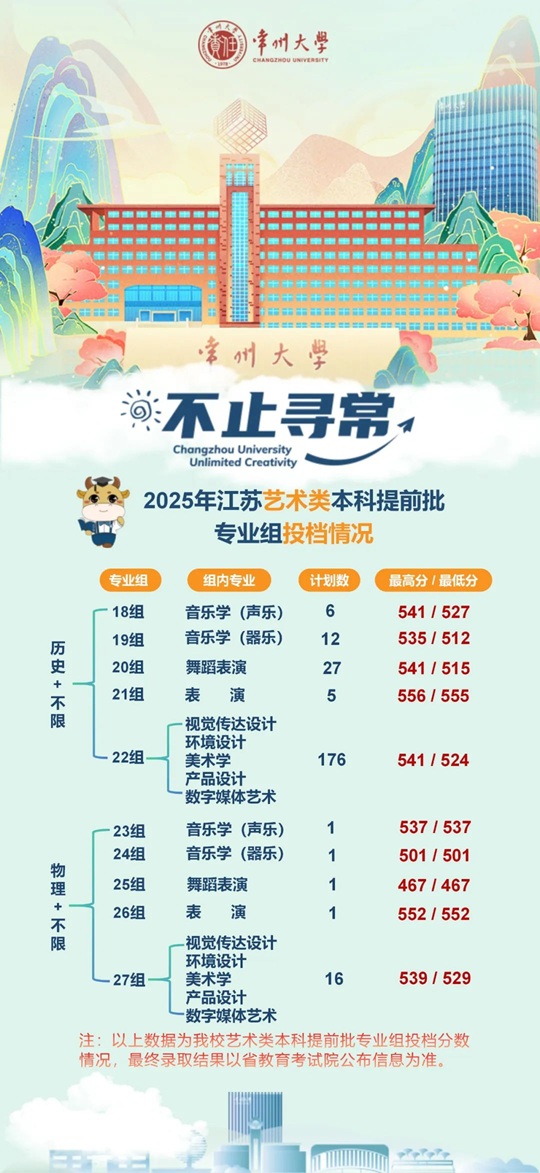 | 常州大學2025年江蘇省藝術類本科提前批專業組投檔情況 |