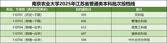 | 南京農業大學2025年江蘇省普通類本科批次投檔線 |