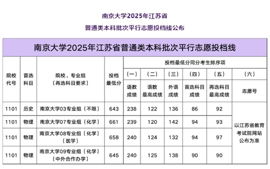 | 南京大學2025年江蘇省普通類本科批次平行志愿投檔線 |