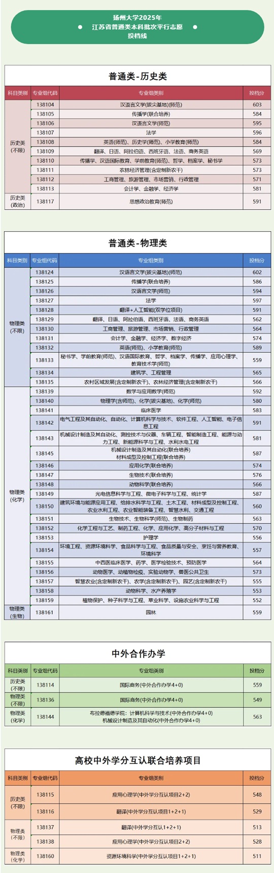 | 揚州大學2025年江蘇省普通類本科批次平行志愿投檔線 |