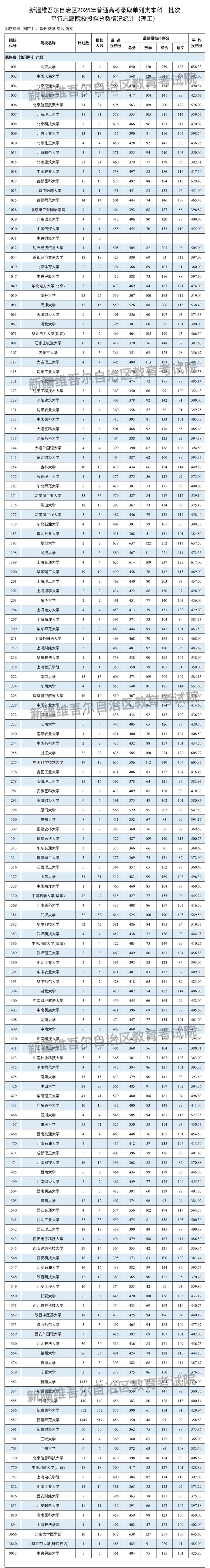 | 新疆維吾爾自治區2025年普通高校招生單列類本科一批次投檔情況 |